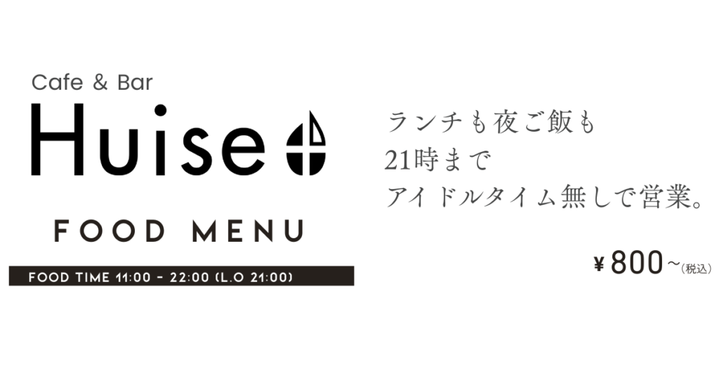 岡本でちょい飲み・昼飲みができるカフェなら|Cafe & Bar Huise+